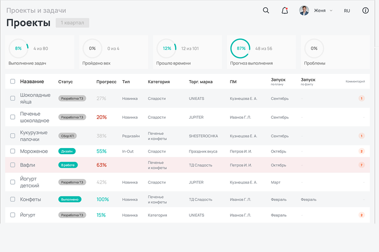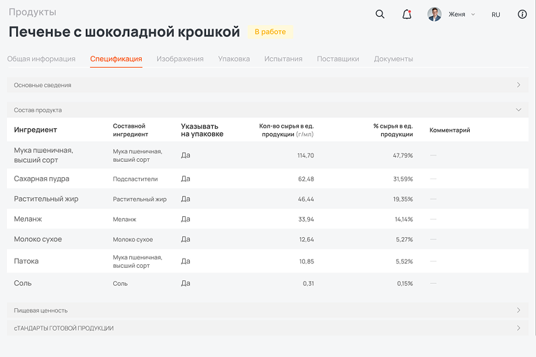 - Отслеживайте качество, управляйте линейками и разработкой рецептур.