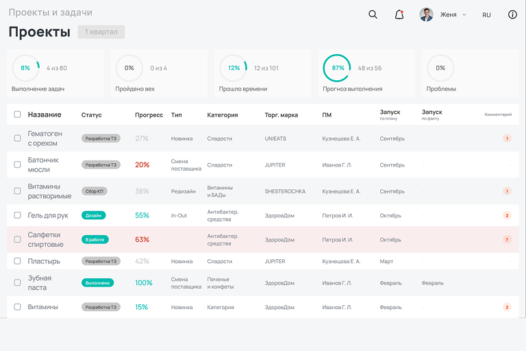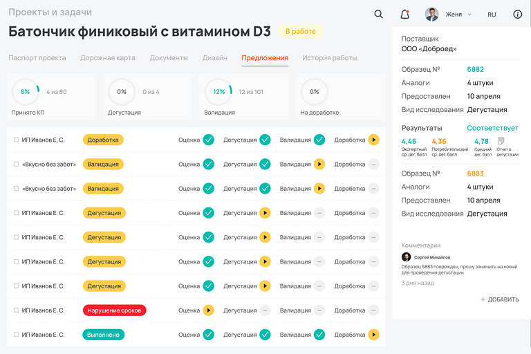 - Организовывайте проектную работу над новинкой, сравнивайте предложения от поставщиков, управляйте каталогом собственных брендов.