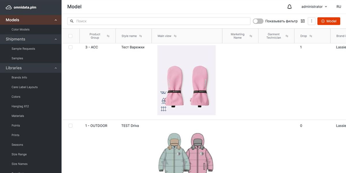 - Создать общую библиотеку данных по моделям. Компании требовалось создать «единый источник правды» по ассортименту, который будет удобен и доступен всем сотрудникам компании. Работа в Lassie выстроена вокруг ассортимента. Достоверная информация по изделиям нужна не только отделу разработки, но и коммерческому департаменту, маркетологам, специалистам по продажам. Важно также транслировать корректную информацию внешним исполнителями и конечными потребителями товаров.