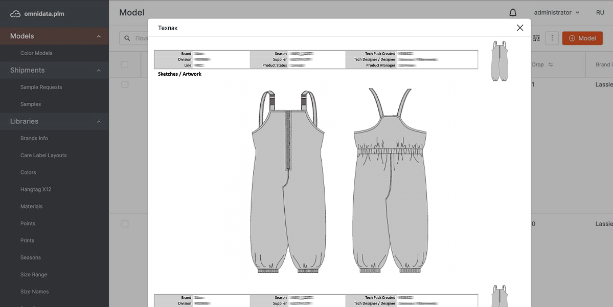- Сделать разработку моделей эффективнее. На плечи небольшой команды ложится много задач: сбор данных из разных источников в единый документ, создание на его основе ассортиментной матрицы, подготовка и отправка технической документации производителям. Руководство ритейлера планировало сфокусировать команду на стратегических задачах и максимально освободить от операционных. А еще хотелось, чтобы специалисты повторно использовали уже существующую информацию по моделям, но не переносили ее вручную перед каждым сезоном из файла в файл.