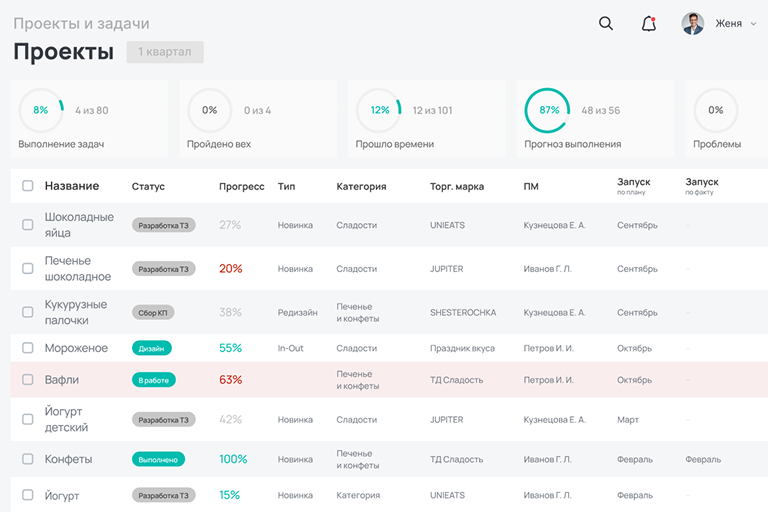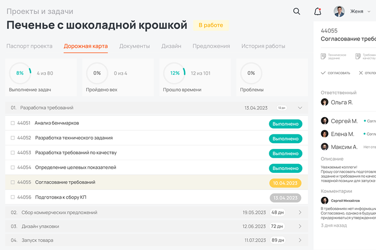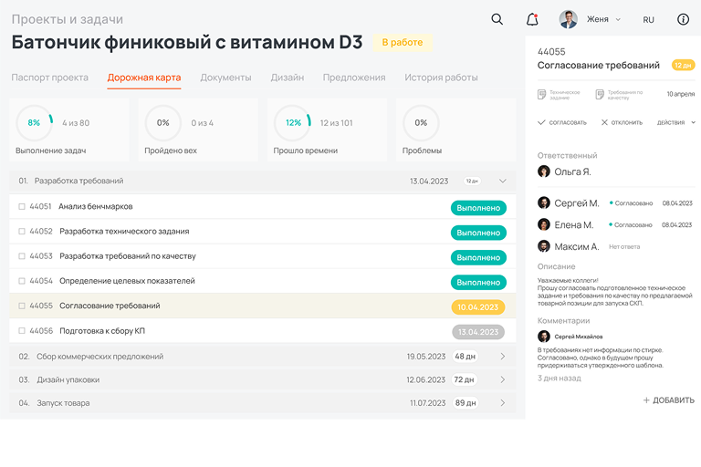 Собирайте информацию о товарах в едином облачном хранилище для работы с документами, планирования выпуска продукции и отслеживания статусов по задачам.
