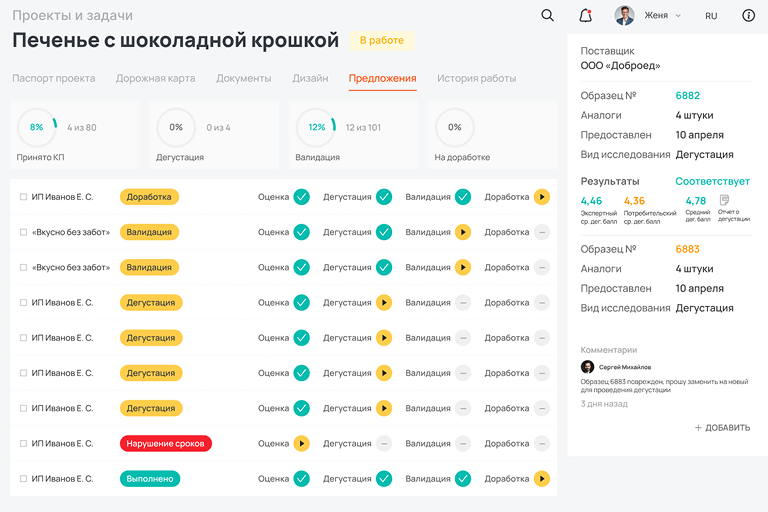 - Обратная связь поставщику и контроль исправления некорректных образцов.