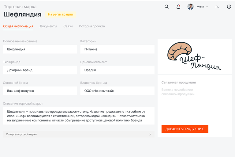 Управление каталогом брендов с контролем юридического статуса и архивом документов